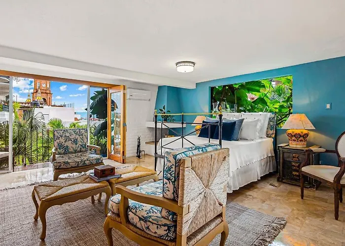 El Apartamento Studio Tropical - Stunning Garden -Cathedral Views Puerto Vallarta está situado a unos 700 metros de la Iglesia de Nuestra Señora de Guadalupe, y a unos 1 km del Viejo Vallarta. Este apartamento se sitúa en el barrio Centro de Puerto Vallarta y ofrece un jardín tropical.